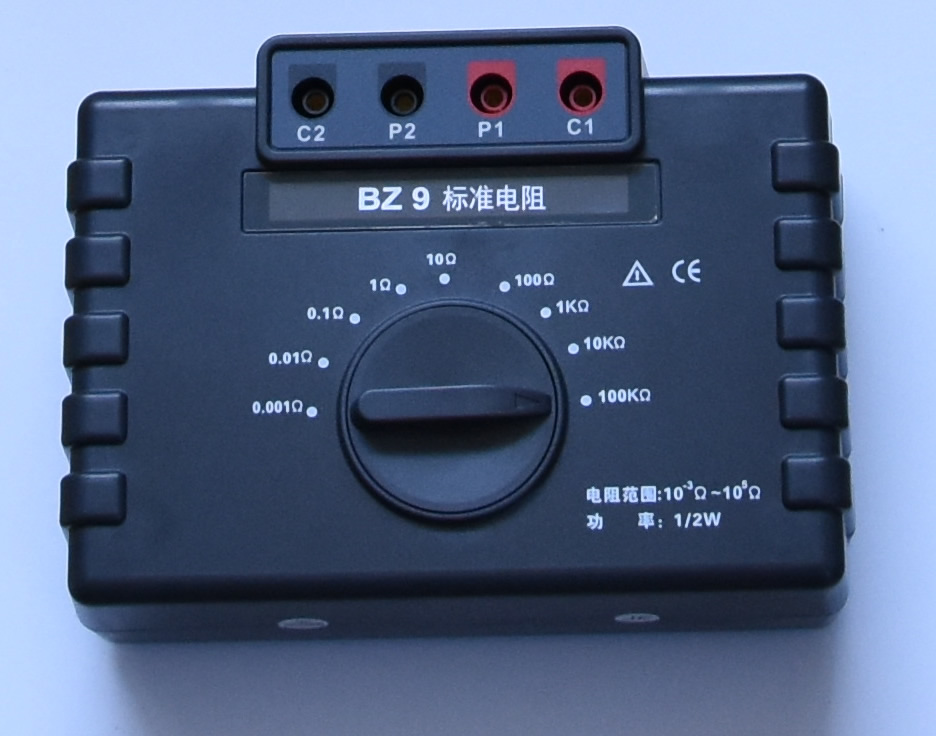 標準電阻BZ9 由9 個1/2W高精度軍工級線繞電阻系列組成四線制標準電阻,直接換檔不需換線,攜帶方便代替傳統的BZ3等單個電阻攜帶不方便切換不同電阻的問題,最高精度達0.05%,為我司特別定制的標準電阻,其阻值包含1mΩ,10mΩ, 100mΩ,1Ω,10Ω,100Ω,1KΩ,10KΩ, 100KΩ,完全滿足31 號令《雷電防護裝置檢測資質管理辦法》中規定的10-3~105 范圍。主要用于接地電阻測試儀,等電位測試儀等儀器的校準。