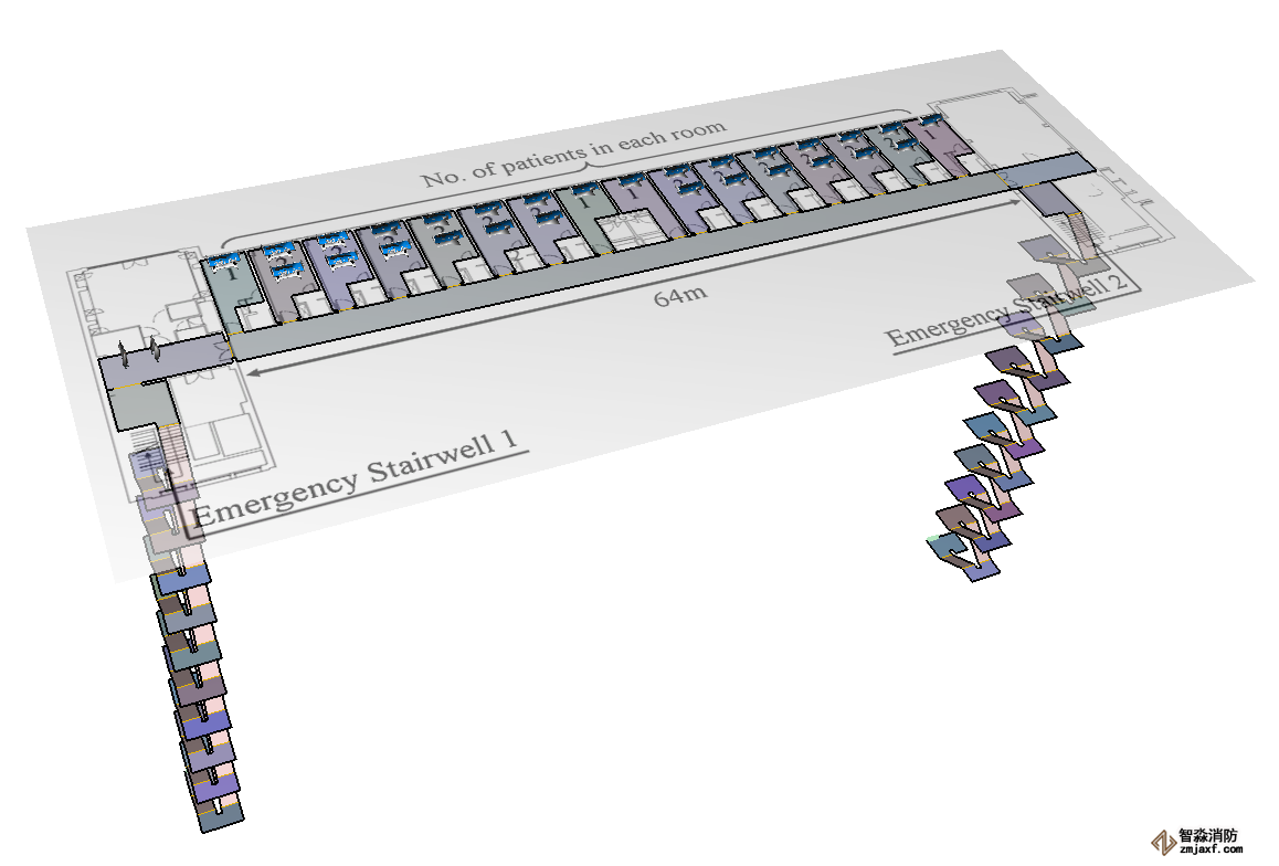 人員疏散能力模擬分析軟件進行醫院疏散模擬
