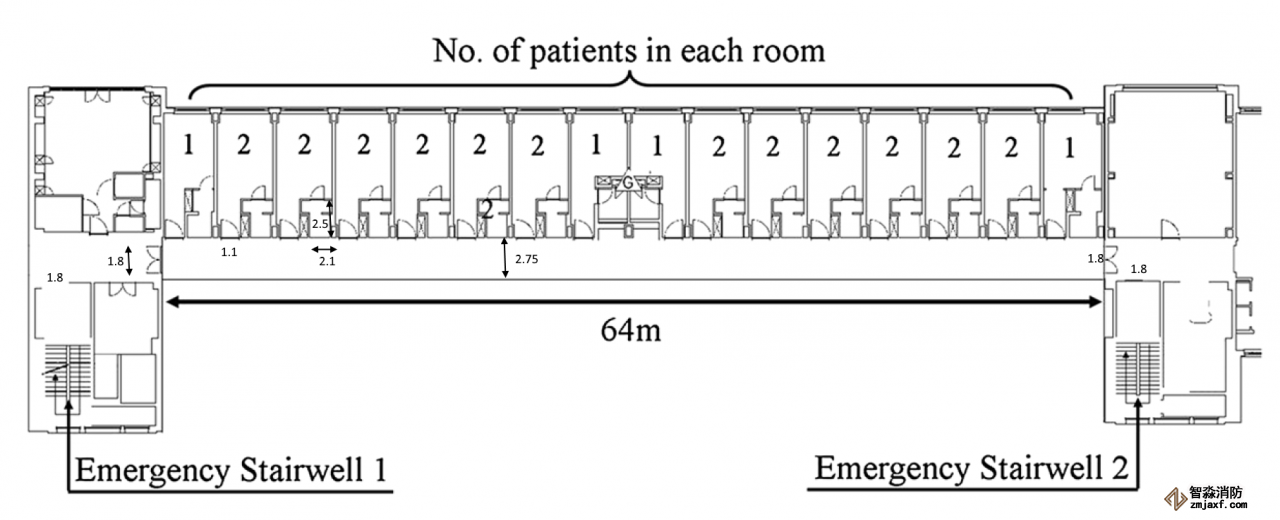醫院建筑具有功能復雜、設備繁多、人流量大、煙囪效應和疏散人員行動較慢等特點,其特點決定了醫院建筑較其它建筑潛伏著更多的火災隱患,一旦醫院發生火災,經濟損失和生命財產損失巨大,而且造成較大的社會影響。近年來,大型醫院建筑迅速增加,為火災防治工作帶來了新的挑戰。 建筑物發生火災時產生大量的煙霧,煙霧中有毒有害氣體是火災傷亡的主要原因,人員死亡多數是因為吸入有毒有害的火災煙氣所致,火災產生的煙氣使人們在疏散時看不清疏散標志和周圍環境,甚至辨不清疏散方向,找不到安全出口,影響安全逃生。因此,開展醫院建筑物煙氣擴散規律研究,對煙流的溫度、濃度以及可見度隨時間的發展而變化以及煙流的蔓延進行模擬,了解和掌握煙氣擴散規律,并圍繞火災等緊急情況下人員疏散規律,進行疏散研究,對醫院建筑開展性能化防火設計,更好地滿足醫院建筑的防火設計要求。并可據此得到行之有效的安全疏散應急預案,配備切實可行的安全疏散指揮和管理方法,對保障人們的生命財產安全意義重大。