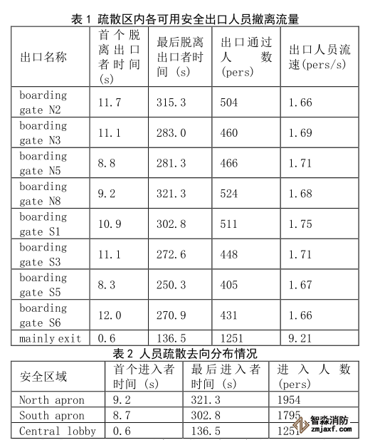 ①結合該機場日常人流量情況, 設定發生火災時該模擬區域人員有 5000 名, 人員密度為 0. 313 per/m2 ;