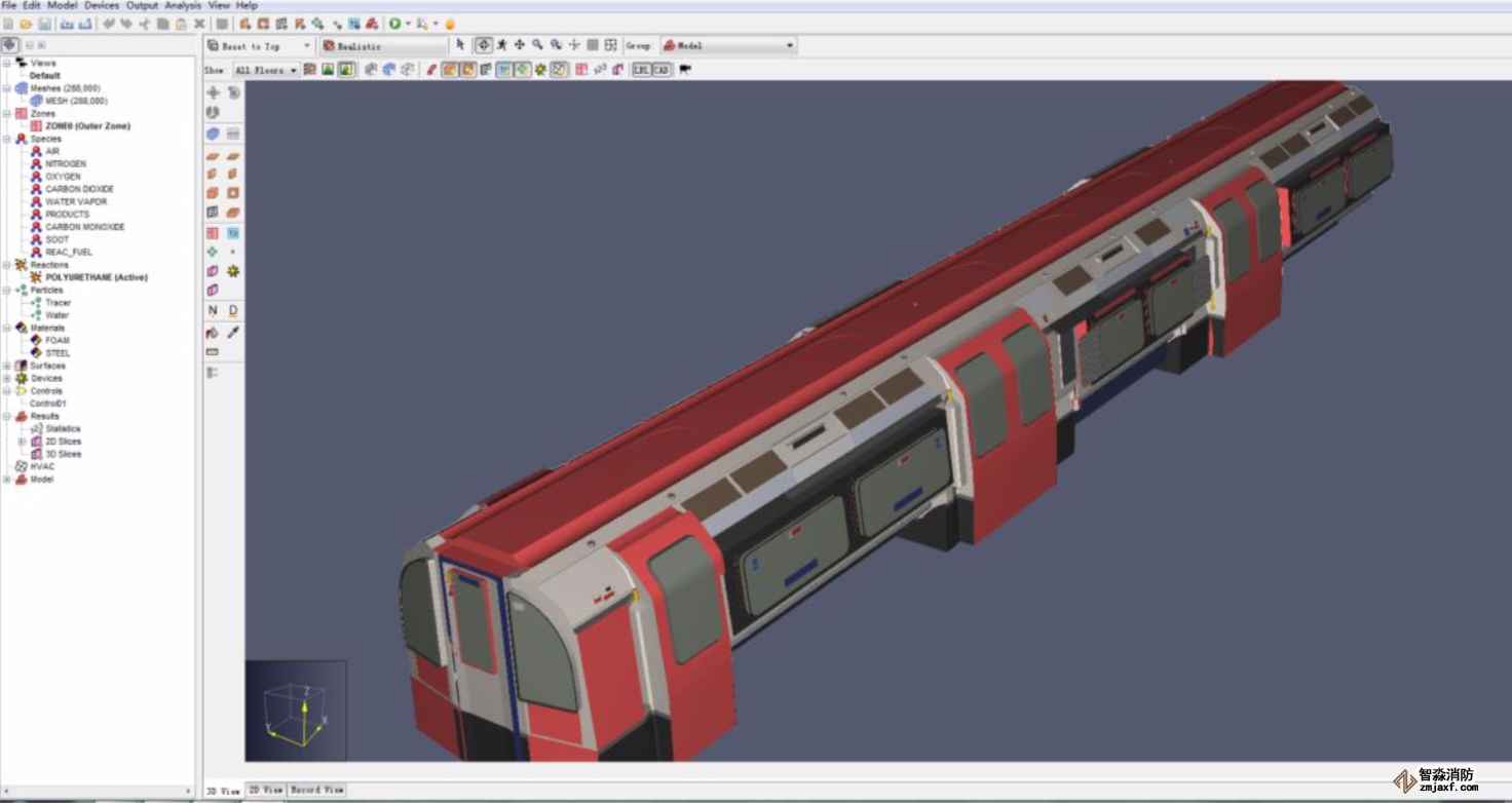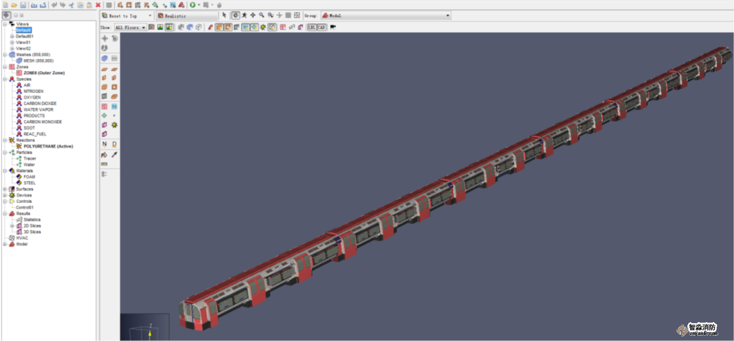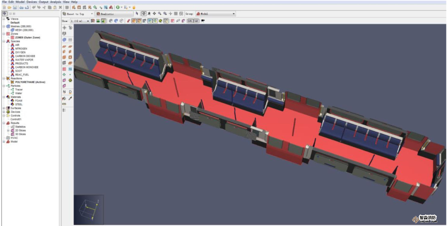 列車火災與疏散模擬,使用軟件Pathfinder+PyroSim