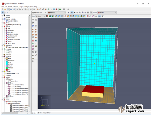 在本示例中,您將創建一個500KW的燃燒器火災,并測量高度為1.5米的煙羽中心的溫度。本例通過指定熱釋放率(HRR)來定義火災。這是消防安全工程師表示火災的非常簡單和常用的方法。消防安全評估軟件